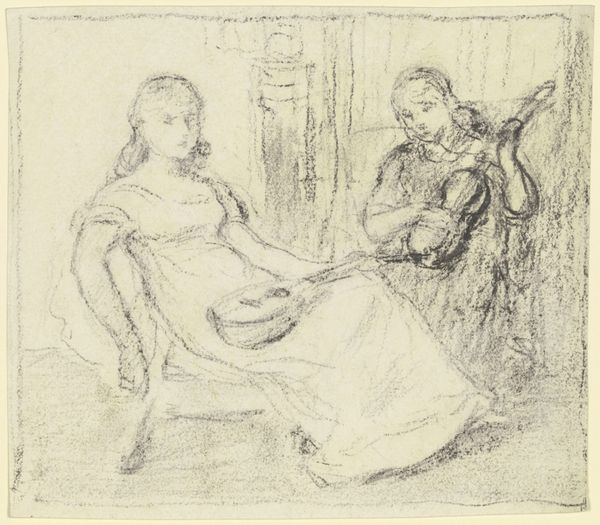This sketch by Jozef Israëls, now in the Rijksmuseum, shows two women engrossed in handwork, rendered in pencil on paper. It's a simple medium, yet the artist coaxes from it a wealth of information about his subject. The quick, hatched lines suggest the atmosphere of a busy interior. The women's postures are bent in concentration as they engage in needlework, a task with a long, rich history. Note the contrast between the deftness of their hands and the static quality of the unfinished face below. We get a sense of labor here, the intensity and skill of the work in progress. Before industrialization, this kind of domestic labor was essential to the economy. But even as machines took over, handwork retained its social and cultural significance. Israëls asks us to consider not just the product of this labor, but also the lives and experiences of the women who perform it. The drawing elevates the everyday, reminding us that profound meaning can be found in the simplest materials and most humble activities.