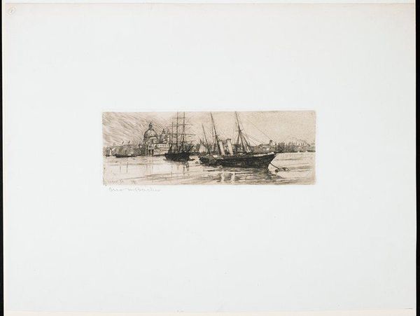 Carl Locher made this print, "Fra Københavns Rhed," using etching, a printmaking technique involving acid, sometime in the late 19th century. Here we see the port of Copenhagen rendered in exacting detail, with its ships and gentle waters. Denmark was a seafaring nation, and Copenhagen a key trading hub, so it is no surprise that an artist of the time would choose this subject. But what might otherwise be a straightforward landscape is also a glimpse into the institutions of art in Denmark at the time. Locher studied at the Royal Danish Academy of Fine Arts and was part of the artistic community centered around the Skagen Painters. This group emphasized realism and plein air painting. By making a print, Locher was engaging with a medium that allowed for wider distribution of his art. To understand this work more fully, scholars consult historical records of the Danish art world, economic data about shipping, and biographies of the artist and his peers.