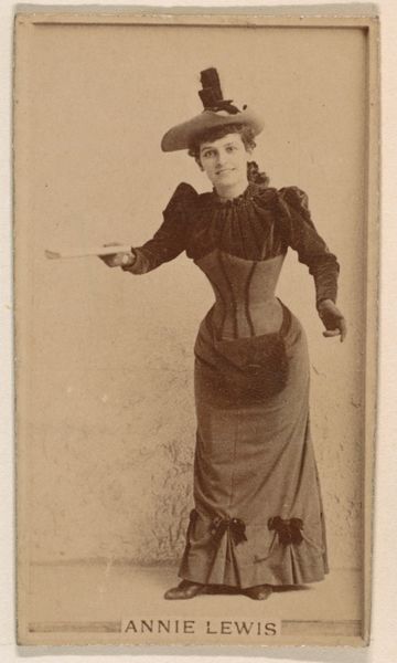 Editor: So, this is "Mlle. Lucie Gerard, from the Actors and Actresses series," a photographic print made by Allen & Ginter between 1885 and 1891. There’s something very poised and intentional about it; a deliberate engagement with performance. What strikes you when you look at this work? Curator: Immediately, I think about the commodification of image and celebrity. Here we have a photograph, mass-produced for cigarette cards, ostensibly advertising Virginia Brights, but really selling an idea of glamour associated with the theater. The gaze she offers is knowing, inviting, but also mediated through layers of commerce and performance. Consider, too, who is given this level of visibility, and what norms are being promoted, subtly yet powerfully? Editor: That's a fascinating perspective. So you're suggesting it's more than just a pretty picture? It’s about the circulation of power and representation? Curator: Exactly. Think about the context: the late 19th century, the rise of consumer culture, and burgeoning celebrity worship. These images were traded, collected, and consumed, shaping ideas about beauty, success, and even national identity. Who gets remembered, and why? Lucie Gerard’s talent is being used to push cigarette sales – what does this say about her agency as a performer and woman in this period? Editor: It's eye-opening to consider how even something as seemingly trivial as a cigarette card contributes to larger societal narratives. Thanks, that makes me see it very differently. Curator: The power of art, even in ephemeral forms like this, lies in its ability to reflect and shape the values of its time. I'm glad we could unravel some of its threads together.