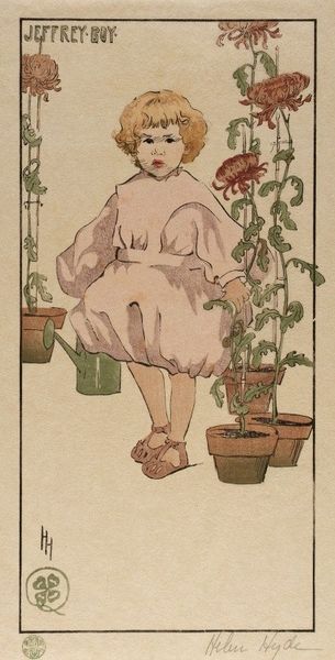 Jessie Willcox Smith created "In the Garden," a work where delicate watercolors and pastels compose a scene of maternal care. The structure of the work is immediately striking: tall flowers frame the composition, drawing our eyes to the figures. The figures themselves are dressed in white, providing a contrast against the vivid greens and blues of the garden. Smith's use of color and form can be interpreted through semiotics, where the garden setting, traditionally a symbol of innocence and nurture, converges with the figures’ interaction. The careful placement of the blue flowers, framing the scene, highlights a controlled yet idyllic space. Looking closely, we see this arrangement communicates a coded message about childhood and maternal influence, inviting ongoing interpretation. The arrangement offers a tableau that continues to invite our reflection on its construction and significance.