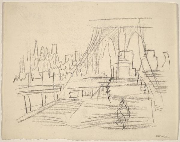 John Marin made this drawing of the New York skyline with pencil, and what’s cool is how immediate it feels. It's like he's sketching his first impressions, right? Look at the bridge and buildings, they’re just outlines, ghosts of form, but they totally nail the energy of the city. There's this feeling of constant motion, like everything is vibrating on the page. He uses these sketchy lines and angles that make the whole image feel alive. Check out the squiggles at the bottom of the image, those lines really animate the foreground. Marin has that expressive, slightly wild quality that you see in other artists like Marsden Hartley, who were pushing against tradition. Both artists capture the feel of a specific place but allow the emotional charge to come through, which I love. It's like they're not just showing you a scene, but also telling you how it *feels* to be there.