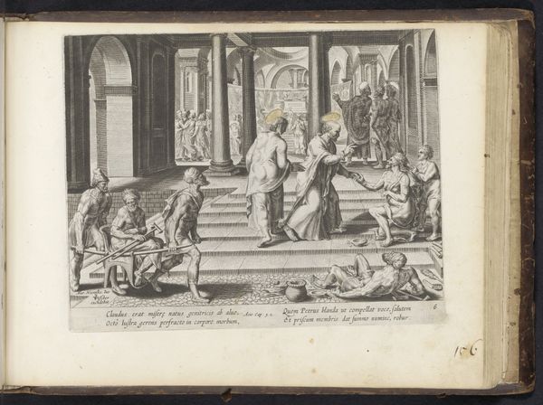Curator: This is "The Elders Trying to Seduce Susanna," an engraving by Hans Collaert the Elder. I'm drawn to the symbolism here, the contrast between purity and lechery, played out in a garden, no less. Editor: The garden is interesting. I'm struck by the material reality of the print itself. Look at the lines, the way the engraver has rendered the textures of fabric and flesh. Curator: It's a classic morality tale, isn't it? Susanna represents innocence, unjustly accused. The Elders are the embodiment of corrupt power, abusing their position. Editor: Yet Collaert's technique, the labor involved, elevates it beyond mere moralizing. Notice the detail in the fountain, it's almost a catalog of material culture. Curator: And those details reinforce the broader themes. The garden, the fountain, are symbols of abundance and temptation. Susanna's virtue shines against that backdrop. Editor: I see it, but the very act of engraving, the multiplication of this image, speaks to a broader social commentary on power, consumption, and dissemination of these narratives. Curator: Well, seeing the symbols and archetypes really brings the story to life for me. Editor: For me, it's the tangible evidence of labor and social context that allows the story to resonate.
