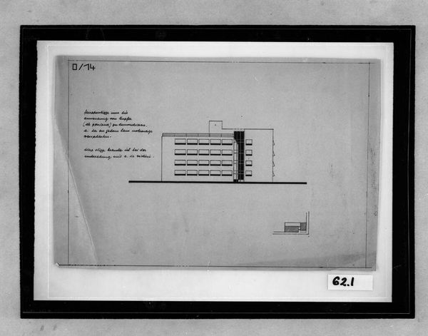Editor: So, this is "Various Projects: Buenos Aires, 1931-1932: Plan" by Walter Gropius. It's an architectural drawing, and I'm immediately struck by how much text is integrated directly into the design. What do you see in this piece? Curator: I see a critical engagement with the means of production. Look at the handwritten notes interwoven with the architectural plan. It collapses the distinction between the designed object and the labor and intellectual processes behind its creation. How does this integration challenge conventional notions of architectural authorship and value? Editor: I guess it makes you think about the architect's hand, making visible the thinking that shaped the design. Curator: Precisely. It highlights the material and intellectual labor involved, inviting us to consider the social context of its creation.