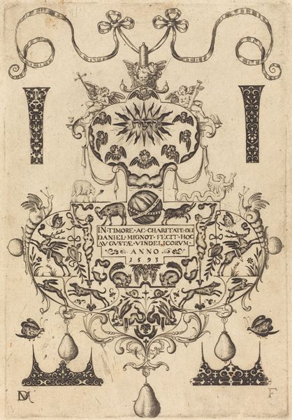 This print "Exlibris P. N." was made by Oleksandr Aksinin, it's hard to say exactly when but he worked in this style in the 70s and 80s. The whole thing has this kind of delicate, sepia-toned feel, like an old photograph or a drawing found in a dusty book. Looking closely, you can see the texture of the paper and the way the ink sits on the surface. The lines are so fine and detailed, almost like a spiderweb. I am drawn to the bucket in the center, there is something almost comical in its expression. The overall effect is like peering into someone's dream or a secret world hidden within the pages of a book. It reminds me a little of Paul Klee, there is a similar sense of whimsy and a love of simple, childlike forms. Ultimately, Aksinin's print invites us to embrace ambiguity.