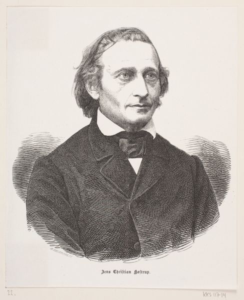 This print of Henrik Hertz was created by Franz Wilhelm Obermann, offering a detailed portrayal rendered through engraving. The tight composition, focusing on Hertz's bust, directs our gaze immediately to his face. Obermann masterfully uses line and texture to define form, creating a tangible presence within the two-dimensional plane. The stark contrast between light and shadow not only models Hertz's features but also lends a dramatic quality to the image. Observe how the intricate network of lines builds up the textures of the hair and clothing, contrasting with the smoother areas of the face. The strategic use of hatching and cross-hatching conveys depth and dimension, giving the portrait a sense of realism. This technique reflects the printmaking conventions of the time, aiming for precise representation and clarity. Notice how the details, such as the spectacles and the subtle expression, contribute to the overall characterization. Through formal means, Obermann captures not just a likeness but also an essence.