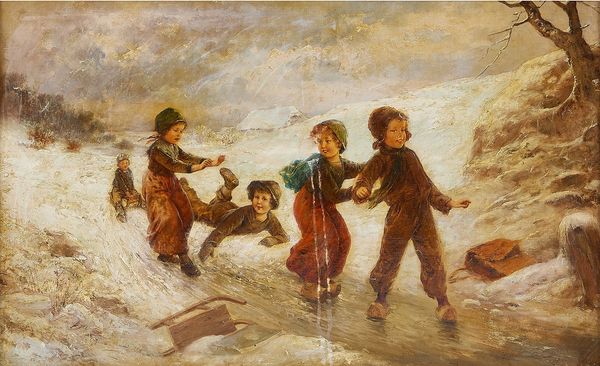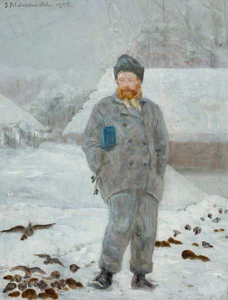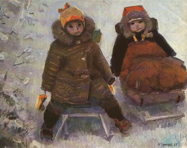 Tetyana Yablonska made “With the Father” with paint, likely oil, at an unknown date. I love the way the strokes are so loose here, almost like she's sketching with paint. There’s a real casualness, and that gives the painting a feeling of intimacy. Look at the snow - it’s not just white, is it? Yablonska uses a whole range of blues and grays, making it feel so real, so cold. And there’s something about the way she captures the light on their faces that gets me. Notice the details of the father's outfit in contrast to the minimalist brushstrokes that define the landscape. It reminds me a bit of some of the Impressionists, but with a folksy twist. It’s like she’s saying, "Hey, art can be about everyday life, too." And that's something I can definitely get behind. It doesn’t try to be overly precious, and it invites you to just hang out with it.