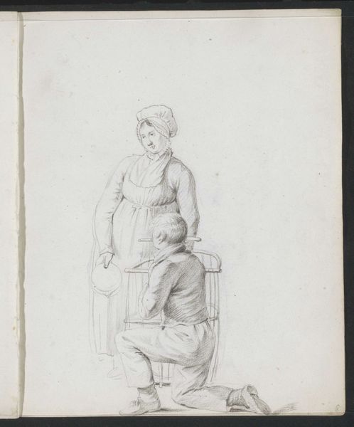Pieter Barbiers’ drawing, likely made in the late 18th or early 19th century, depicts a woman fainting after reading a letter. It's rendered in delicate pen strokes and washes of ink, a technique requiring precision and control. The drawing’s social context is rooted in the tradition of depicting dramatic, emotional scenes, reflecting societal norms around gender and sensitivity. The artist skillfully uses line and shading to convey the woman's distress and the surrounding figures’ concern. The emphasis on fine lines and delicate washes also speaks to the era’s aesthetic values, valuing elegance. The work's impact lies in Barbiers' ability to capture a complex emotional moment with simple materials. It invites viewers to contemplate the power of communication and its impact on human experience. By elevating a commonplace scene to art, Barbiers transcends the distinction between everyday life and artistic expression, inviting us to see beauty in the ordinary.