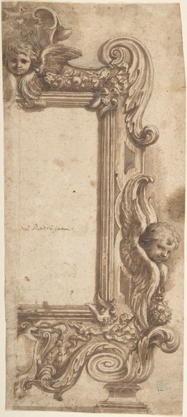 This is an architectural design, rendered in pen and ink, for the right side of a door with pediment and fluted pilasters. The drawing is concerned with the aesthetics of power and status. Architectural drawings like these offer a glimpse into the cultural values of a particular society, revealing who had the power to commission such designs and whose stories were deemed worthy of representation in stone and structure. Notice, for example, the use of classical motifs like the pediment and fluted pilasters, which borrow from ancient Greek and Roman architecture. This anonymous drawing allows us to consider the ways in which architectural designs can perpetuate or challenge societal hierarchies. The design embodies the emotional investment in creating spaces that reflected and reinforced prevailing social norms. In considering who was included and excluded from such spaces, we start to understand how architecture shapes identity and experience.