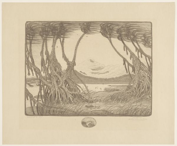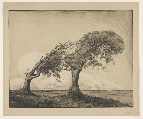 Curator: The stark, almost oppressive sky seems to dominate this work. There’s a stillness that feels loaded, expectant, doesn't it? Editor: Indeed. We're looking at "Glooiend Landschap", or "Rolling Landscape", a graphite drawing executed by Simon Moulijn in 1893. Currently it is held here at the Rijksmuseum. Its delicate impressionistic style captures a particular Dutch vista, one filtered through the artist’s unique perspective. Curator: The near absence of figures strikes me. The geometric lines in the fields and clouds are precise, yet also unsettlingly dehumanized. It reflects a late 19th century anxiety about land ownership and social hierarchy. The emphasis on geometric elements, in fact, brings into view a power dynamic –the people as labor are off the view. Editor: That is a astute observation. Considering the period, one must reflect upon how land representation intertwined with burgeoning national identity and industrial advancement. Landscape art in this era often acted as both a celebration of pastoral beauty and a subtle assertion of control over the environment. It could very well serve an intended and perhaps unintended ideology of a growing bourgeois. Curator: The choice of graphite is particularly compelling. Graphite’s ability to create subtle tonal variations and textures transforms what could have been just a simple sketch, into a work resonating social power and industrial revolution. It certainly elevates this humble material, pushing graphite's conceptual limits. The artist brings the medium into the question of cultural anxieties of his time. Editor: Exactly! What this work shows us is that artists and their materials never exist in a bubble. Moulijn likely encountered and deliberately decided to follow—or go against—prevailing norms of academic landscape art in order to contribute, wittingly or not, to the politics of imagery. Curator: By investigating seemingly “simple” landscapes, we unlock these profound insights into the intersection of social history, ideology, and the very tangible conditions of material artistic practices. Editor: A potent reminder of art's ever-evolving role in reflecting and refracting our complex reality.