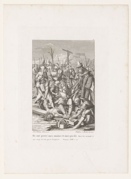 Désiré Mathieu Quesnel created this print of knights drinking from a spring using engraving, a skilled, labor-intensive process. The image is made by incising lines into a metal plate, applying ink, and then pressing paper against the plate to transfer the image. The engraver's skillful hand is evident in the intricate details and textures of the scene. Notice how the lines create a sense of depth and shadow, bringing the scene to life. Engraving, unlike some other printmaking methods, demands precision and control, with each line carefully carved to create the desired effect. The process leaves little room for error. This meticulous, artisanal approach is a far cry from today's digital printing, reflecting a time when the value of the artwork was directly tied to the investment of time and skilled labor. In this context, Quesnel's print reminds us that art-making is not just about the final image, but also the dedication and craft involved in its creation.