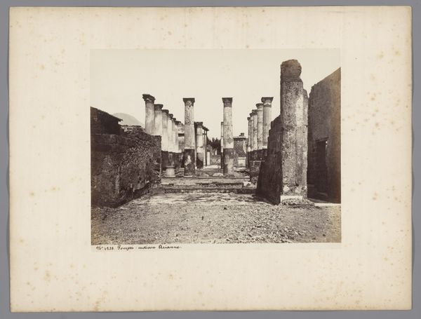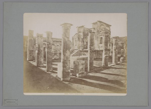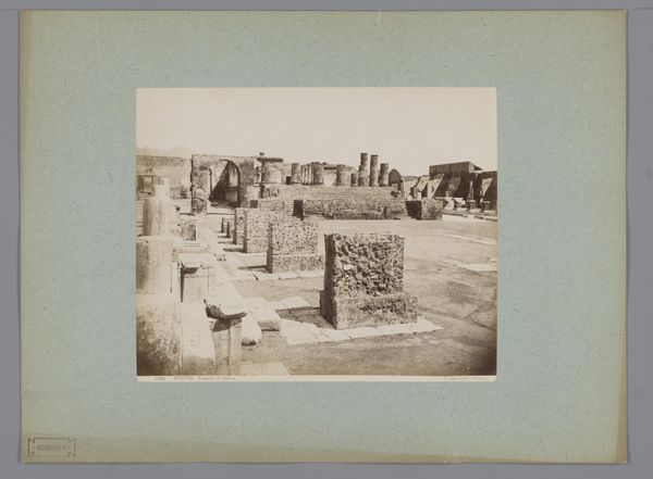 Giorgio Sommer created this photograph, 'Ruins in Pompei, Italy,' in the 19th century. What strikes you first is the stark, almost geometrical composition. The crumbling arches frame the skeletal remains of Pompeii. Sommer uses the interplay of light and shadow to emphasize the rough texture of the stone, giving the ruins a tangible presence. This use of light is not merely representational; it is structural. It shapes our perception and understanding of the scene. The arches, while ruined, still serve as a form, imposing a sense of order on the chaos of destruction. This formal juxtaposition invites us to consider themes of time, decay, and the enduring nature of structures. Are they physical or are they the basis of our conceptual world? The photograph isn't simply a document, but an exploration of how we perceive history through constructed forms and spaces. It challenges our understanding of what remains and what has been lost.