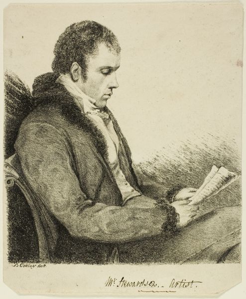 Editor: Here we have François Joseph Heim’s "Portrait of a Man," a drawing located at the Harvard Art Museums. It feels intimate, like a stolen moment of contemplation. What do you see in this piece? Curator: I see a representation of masculinity and intellect, but also a potential commentary on the role of men in society, positioned perhaps as the intellectual gatekeepers. Consider the male gaze inherent in art history; how does Heim challenge or reinforce it? Editor: So, you’re thinking about the social expectations placed on men at the time? Curator: Precisely. And how the act of reading, seemingly innocent, could also be interpreted as an assertion of power, of access to knowledge denied to many others. What does it mean to depict a man in quiet study? Editor: I hadn't thought about that. I was so focused on the peaceful mood. Curator: It's a starting point for interrogating broader power structures. Editor: That’s given me so much to consider! Curator: Indeed. Art can be a powerful tool for understanding and challenging the status quo.