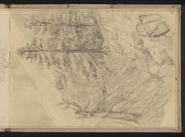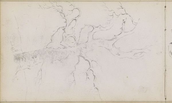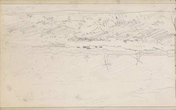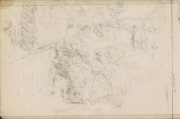 Editor: Here we have Anton Mauve's "Abklatsch van de krijttekening op pagina 27 verso," a pencil drawing dating from around 1876 to 1879. It's currently held in the Rijksmuseum collection. My initial impression is of something very delicate and fleeting, a whisper of a landscape, perhaps. What catches your eye about this piece? Curator: It’s funny you say 'whisper,' because it feels like catching a memory, doesn't it? The sketchiness is its strength, its intimacy. It’s like looking over Mauve's shoulder as he tries to capture the essence of a place. But what IS that place? Does it matter? Or is it more about the *act* of seeing, the fleeting moment of inspiration? Look at the suggestive lines; they’re not precise, yet they evoke trees and open space. And I wonder about "Abklatsch"... almost like a rubbing. What secrets are embedded on that verso? Editor: That’s interesting—I hadn’t thought of it as the act of seeing itself, but more as a study for something bigger. Could the "Abklatsch" suggest it’s a copy, a quick impression of a more complete work he planned to create later? Curator: Perhaps. Or perhaps it's the complete work in its own right! Think about the artistic climate then; Realism was about truth to observation, but also about honesty in process. This *is* his observation, unedited. It has a raw beauty, a humbleness that a more polished piece might lose. Do you find it less 'valuable' because it’s a sketch? Editor: That's a good point. I guess I do still associate value with "finished" works. But seeing it as an intimate glimpse into his process makes it much more compelling. Curator: Exactly! It reminds us that art isn't always about the final product, but about the journey, the feeling, the *seeing*. And sometimes, the quickest sketches capture more than a thousand carefully rendered details ever could. Editor: I’m definitely rethinking what I look for in a piece. It's a very unassuming work that encourages us to appreciate the beauty of the imperfect and immediate. Thanks for opening my eyes to that.