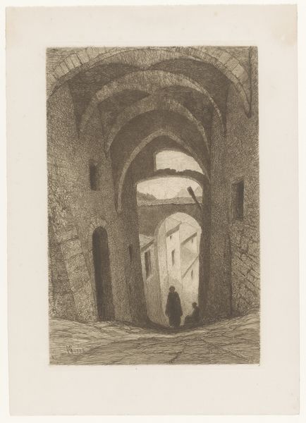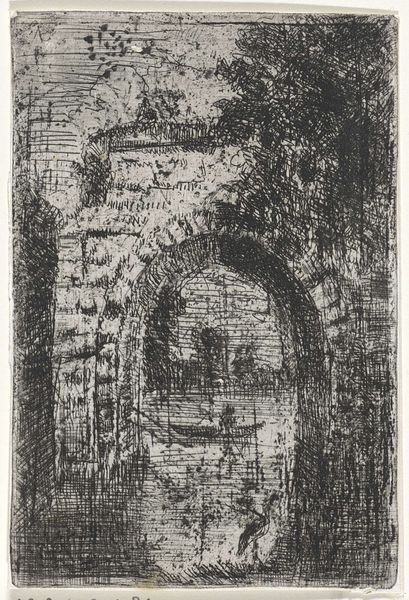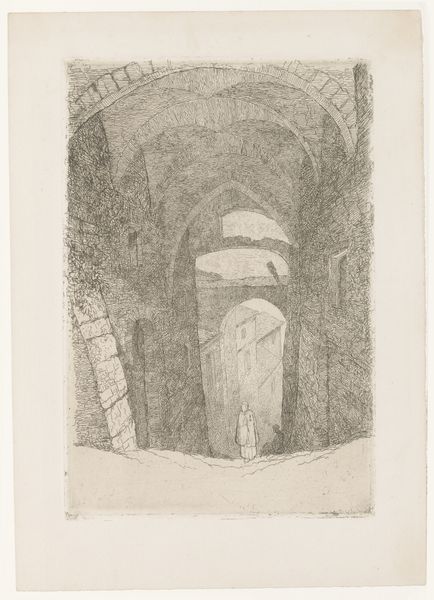 Editor: So, this is Hercules Segers' "The Entrance Gate of the Ruins of Brederode Castle," from around 1618-1622. It's a pencil drawing, and it has a haunting, almost apocalyptic mood. What strikes me is the emphasis on decay and ruin. What do you see in this piece? Curator: I see a powerful statement on the ephemerality of power and the impact of socio-political upheaval. Brederode Castle, in its ruined state, becomes a symbol of a feudal order in decline, especially considering the context of the Eighty Years' War. This wasn’t just a pretty landscape; it was a site of struggle. The skeletal remains of the castle serve as a stark reminder of resistance against Spanish rule. What does that tension mean to you as you look at it? Editor: I didn't initially connect it to the Eighty Years' War, but that context makes the "haunting" mood even stronger. It is not just decay, it is the effect of a colonial power on a place, a people. It goes beyond the romanticism of ruins, doesn't it? Curator: Precisely. Segers is forcing us to confront the very tangible consequences of conflict, the ways in which structures of power – be they literal castles or ideological systems – crumble and impact ordinary lives. It prompts us to reflect on who benefits from such ruin and whose stories are often erased from the historical narrative. We see the mark the state of constant war made on its subjects and the land they inhibited. Editor: This makes me think about how we still see the remnants of conflicts reflected in our world today, the way that war and colonial projects keep impacting places and lives. This old drawing, though it is a historical document, it feels like it’s speaking directly to the present. Curator: Absolutely. And by extension, about how we build, rebuild, and resist. I’m so glad we explored this today.