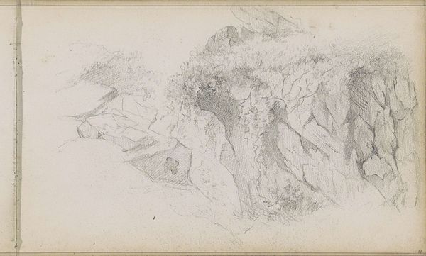 Curator: Here we have Jacobus Everhardus Josephus van den Berg's pencil drawing from 1830, "Coast of Amalfi." It's a realistic landscape rendered on paper. Editor: My first thought is that it feels almost like a dream. The pale pencil strokes create this ethereal, soft quality, like a memory of a place rather than a strict depiction. Curator: Precisely. While realistic in its subject matter, the work exemplifies the Romantic era's interest in capturing feeling and experience, fitting into a larger context of landscape art used as nationalistic and political statements in the early 19th century. How do you interpret this connection here? Editor: Well, the choice of Amalfi itself is telling. Italy was a significant site of cultural and artistic pilgrimage. By depicting it, Van den Berg places himself within a lineage of artists who sought to connect with history, with beauty, but, perhaps more importantly, with privilege. Who gets to travel and experience these picturesque locales? That’s always part of the subtext. Curator: That is a valid point. The art market shaped what landscapes were deemed worthy of representation, and access was inevitably dictated by social position and wealth. Van den Berg certainly benefited from the patronage system that supported artistic production during his lifetime. This work reminds us that art and cultural consumption were entangled in broader social and economic structures. Editor: It makes me wonder about the relationship between the landscape, the architectural elements sparsely represented in the work, and the local populations who lived and labored in the area. This depiction of a serene, sublime coastline probably elides some socio-political realities about who actually inhabited this place. Curator: Certainly, that tension between the idealized view and the reality of daily life is crucial. This drawing invites us to analyze what’s present but also what remains conspicuously absent, namely the lives of those whose labor underpinned the Amalfi Coast. Editor: It reminds us that even seemingly simple sketches can open doors to broader questions about representation, power, and the enduring legacy of place. Curator: A perspective I’ll consider deeply as I continue researching the role that these apparently placid images played in solidifying socio-economic structures.