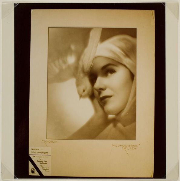 This photograph, "Fate," by Paul Gittings, is a powerful study in the manipulation of light, shadow, and photographic development techniques, common to the time it was made. Photography in this era was labor-intensive, requiring skill in not just capturing the image, but also in darkroom processes. Gittings likely used techniques of dodging and burning to selectively lighten or darken areas of the photograph during printing, enhancing the subject’s ethereal glow. The choice of sepia tone, achieved through chemical treatments, lends the image a timeless quality, evoking nostalgia and warmth. The technical mastery evident in this work reflects the broader context of early 20th-century portraiture, where photographers often blurred the lines between art and craft. Gittings’ photograph is not merely a record, but an intentional construction, imbuing the subject with an air of idealized beauty. By emphasizing the handcrafted aspects of this medium, we can appreciate the artistry involved and challenge traditional hierarchies of art and craft.