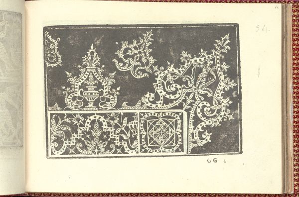 Curator: What do you see when you first look at this page? It’s from Cesare Vecellio’s *Corona delle Nobili et Virtuose Donne*, page 60, made in 1601. It’s currently held at the Metropolitan Museum of Art. Editor: I'm struck by this sense of infinite detail contained within a finite space. It feels almost meditative; the precision of each tiny shape… it's like looking into a kaleidoscope of history, you know? Curator: That's beautifully put. Vecellio’s “Corona,” is a compendium of sorts; a celebration and classification of female costumes and lace patterns, a real cultural artifact. These engravings are documents steeped in societal meanings, particularly around virtue and nobility as defined then. Editor: So it’s not just about pretty patterns? Curator: Exactly. Each element has weight. Note the symmetrical borders, and the bestiary below: griffins, vases, figures. This wasn't just aesthetic; these repeating images invoke social orders and symbolic associations – power, prosperity, skill. The drawing speaks volumes about how status and identity were constructed. Editor: The repetition, the little creatures, it feels like a proto-wallpaper design… like something William Morris would have tripped over with great excitement in a dusty archive. It’s amazing to think women wore these. Or made these! Were they aware they were walking around with encyclopedias of coded symbolism on their sleeves? Curator: Most definitely. Remember, textiles and attire were key signifiers. Craftswomen were powerful keepers and transmitters of visual language. This book ensured their designs were circulated even further. Editor: It gives me such respect for the craftsmanship—and also for the wearers. Each piece was a wearable text. Looking at it makes you wonder about the weight of such images. The original function, so precise. And then now—how different we perceive such things. Curator: I completely agree. Looking at the past allows you to gain insight on the continuity and changes in value. Something created as an explicit status symbol now triggers such a chain of introspective observations about time, perception, and identity… fascinating isn’t it?
