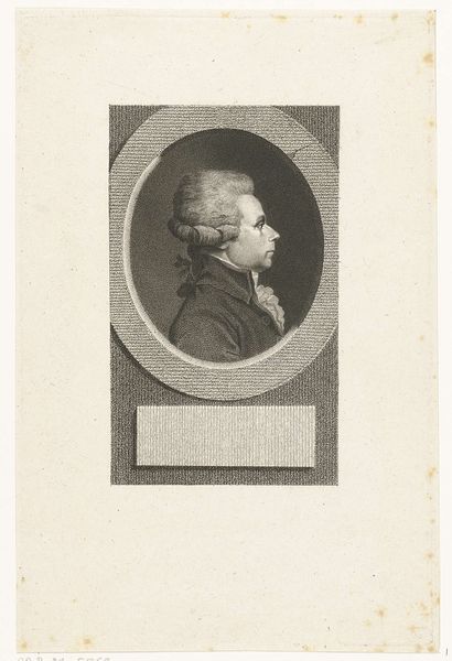 This is a portrait of Bernard-Joseph Saurin, made by Louis Croutelle in the late 18th century. It’s an engraving, a printmaking technique that excels in precise detail, as we see here. Look closely at the lines. Croutelle uses hatching and cross-hatching, building up tonal depth to create a sense of volume, particularly noticeable in Saurin’s face and wig. The composition is formal: the subject is framed within a rectangle, a typical convention of portraiture, yet Croutelle subtly disrupts this formality. Saurin's gaze and slight smirk create a sense of psychological depth, hinting at the man beneath the powdered wig. The print embodies the Enlightenment's interest in reason and observation. The emphasis on clear lines and structured composition mirrors the rationalist philosophies of the time. Yet, there’s also a hint of the individual, a challenge to fixed categories of representation. The artist's skill lies not just in technical ability but in the expression of character, inviting continuous exploration.