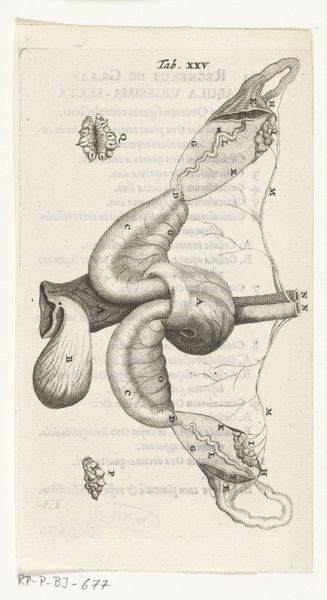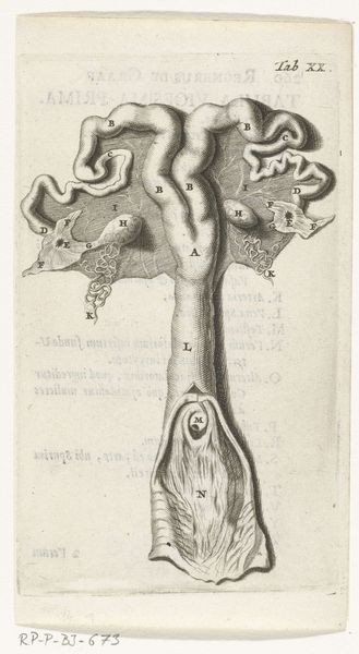 This print of the female reproductive organs was made by Hendrik Bary in the late 17th century. During this time, scientific understanding was intertwined with social beliefs about gender, often reinforcing patriarchal views. This image, with its detailed depiction of the female anatomy, would have been used for medical study, yet also reflects a broader cultural gaze on women's bodies. The clinical representation here is not neutral; it's made by a male artist in a society where women's bodies were often seen as objects of mystery and control. The print invites us to reflect on how medical and scientific illustrations can perpetuate gendered power dynamics, shaping not only medical knowledge but also societal attitudes. Consider how this image might have influenced perceptions of women's health and identity during that era. It reminds us to think critically about the historical contexts that influence how we understand the body.