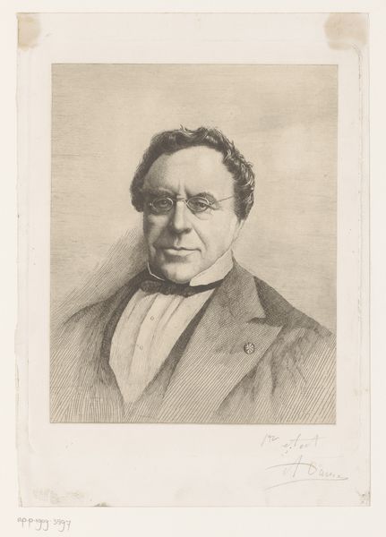 Editor: This is Jan Veth’s "Portret van Abraham Kuyper," created in 1900. The texture is captivating – almost like a photograph, yet you can see the artist's hand in it. The man portrayed seems to be in a position of authority, though the old-fashioned style softens the impact. What's your take? Curator: Well, this portrait reflects a pivotal moment in Dutch history, a time when figures like Kuyper were shaping the nation's political and religious landscapes. Veth captures Kuyper not merely as an individual, but as a symbol of the burgeoning neo-Calvinist movement. Notice the sober palette, and formal composition: these weren’t accidental choices. Veth, consciously or unconsciously, participates in the construction of Kuyper’s image as a man of gravitas, of seriousness. What kind of reception might this image have generated at the time? Editor: It makes me wonder how this image was originally displayed and perceived. Was it meant for public consumption, reinforcing his image? Curator: Exactly! Images like these were vital in solidifying political figures' influence. They circulated in newspapers, pamphlets, and even hung in public spaces, subtly shaping public perception. The Rijksmuseum, where it is now, alters its significance too – what was once a propaganda tool, so to speak, has become an object of art. The setting undeniably gives the image a sense of validation and reverence it might not have possessed initially. Does that impact your perception of it at all? Editor: Definitely! I see now how museums themselves can affect how we understand art and history. Learning about the socio-political use of such portrait is fascinating. Thank you! Curator: My pleasure. Hopefully you gained some perspective on how art acts as a lens through which to understand history, its construction, and continuous reinterpretation.