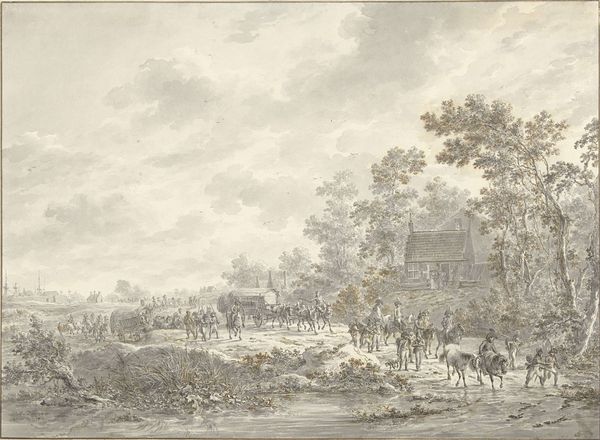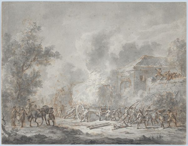 Dirk Langendijk made this watercolor drawing of a battle scene in the late 18th or early 19th century. The scene depicts a chaotic clash of soldiers near a church, rendered in muted tones that evoke the smoke and confusion of warfare. Langendijk was working in a period of great upheaval, particularly in the Netherlands. The Dutch Republic was in decline, facing internal political divisions and external pressures from larger European powers. Military scenes like this were popular, but they also reflect a society grappling with questions of national identity, defense, and the role of its military. The presence of the church suggests the social order of the time. Is it under threat? Is it being defended? By studying military records, political pamphlets, and other artworks from the period, we can better understand how Langendijk's image participates in contemporary conversations about war and society. In this way, the meaning of art is always tied to its social and institutional context.
