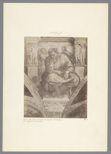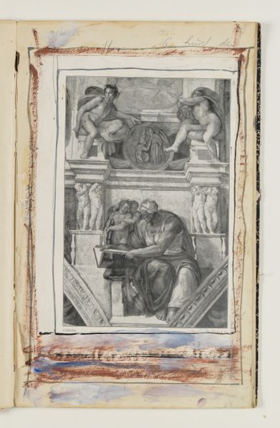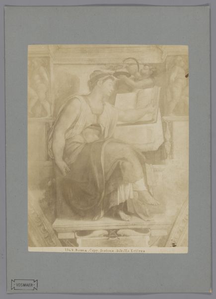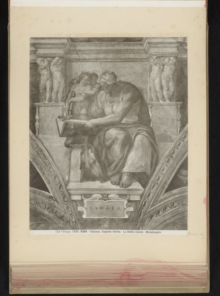 Curator: The Sibyl of Delphi! What strikes you about this rendition of Michelangelo’s fresco? Editor: The overall subdued tonality really brings out the weightiness of the subject matter. It’s all done with pencil and charcoal on paper, isn’t it? The softness juxtaposed with the monumentality creates an interesting tension. Curator: Absolutely. The work you see here is an early 20th-century study produced before 1907 by Edizione Brogi. What’s fascinating to me is how this drawing mediates our access to the original fresco in the Sistine Chapel. It’s history filtered through a lens of reproductive technologies and shifting aesthetic priorities. Editor: And, of course, Brogi's piece re-materializes the Sibyl into something that’s not fresco on a gigantic, holy ceiling. Its very making and reproduction via charcoal, paper, and printing technologies change how people would interact with Michelangelo's art. No longer exclusive, or purely divine, or imposing – the Sibyl has become available, affordable. Curator: Yes, and we must think about the context in which Brogi produced it. At this point, photography was beginning to disseminate images widely. I imagine prints and drawings such as this also served as mementos and ways of recalling grand tours. How interesting that the means of art production impacts the modes of remembrance. Editor: Indeed! We also must consider the labor. There’s an inherent flattening of hierarchies here. Someone other than Michelangelo, someone perhaps uncredited, invested hours in charcoal rendering – a skill. The marketplace would transform his craft into decor. Curator: Precisely. Brogi’s studio made Michelangelo accessible while, perhaps inadvertently, opening discussions around value and artistic labor. It complicates the idea of a singular "genius" behind a work. Editor: So, looking at this rendering as documentation, or simply decor, misses so much of what the work *is* in our material world. Curator: It really is a reminder that artistic interpretation is so complex and that every layer of production and reproduction, like this one, carries significant social meaning. Editor: Brogi’s work isn't just a copy but a transformation. I’m drawn to how material change remakes our understandings of history.