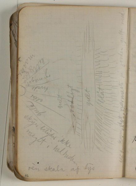Editor: Here we have Niels Larsen Stevns’s "Målenagivelser," a drawing in graphite on paper, made sometime between 1932 and 1935. Looking at the notes and geometric figures, it gives me the impression of something functional, like an architect’s sketch. What can you tell me about this piece? Curator: It’s interesting you see functionality, because that gets us closer to its sociohistorical meaning. These measurements are likely connected to Stevns's commission to decorate the Copenhagen University Library. Consider the modernist period in Scandinavia. Public art became a vehicle for expressing social values, scientific advancement, and national identity. Editor: So, the precision speaks to the values of that period? Curator: Exactly. This wasn't just art for art's sake; it was art deeply intertwined with social progress. These measurements, though seemingly abstract, speak to the immense planning, the almost utopian striving for perfection embedded within social democratic ideals. What do you make of the handwritten annotations scattered around? Editor: They seem like an intensely personal touch, contrasting with the overall rigidity of the measurements. Almost as if to acknowledge human agency. Curator: Precisely. It's that tension, that dialogue, which reveals the layered meanings embedded in a seemingly simple drawing. These individual annotations hint at the lived experiences and human labor behind the project. How can something functional also be so... intimate? Editor: I see that contrast much more clearly now – between objective measurement and subjective interpretation. It's a reminder of how much context shapes our understanding. Curator: Agreed. Examining these seemingly disparate elements invites us to consider art not in isolation, but as a reflection of societal values and individual experiences during that period. We also reveal art's intersectional position in history, technology and social activism.