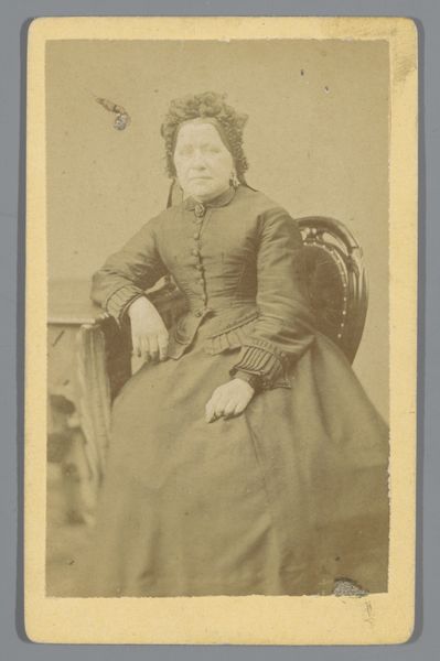 This carte-de-visite, or visiting card, by P. Weijnen & Fils, is a small photographic print on paper, a popular format in the mid-19th century. The photographic process itself – likely albumen printing, using paper coated with egg white – was relatively new at the time, a fascinating blend of chemistry and artistry. Consider how the image’s sepia tone and soft focus, inherent to the process, lend a nostalgic air, almost like a hazy memory. The sitter’s dark, voluminous dress, made from a densely woven fabric, absorbs light, contrasting with the delicate lace trim. We see a woman, likely middle class, signaling the increasing accessibility of photography beyond the elite. These cards weren’t just portraits, they were tokens of social exchange, and subtle markers of status. The mass production of these images reflects the rise of industrial capitalism, yet each one also holds a unique human presence. It reminds us that even in an age of mechanization, the personal and the handmade still find their place.