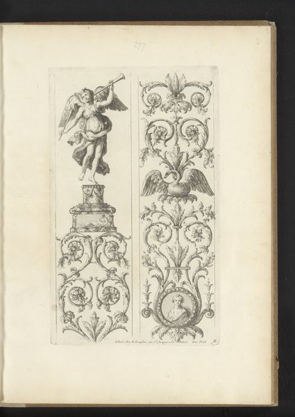 This print by André Charles Boulle depicts designs for elaborate furniture, capturing the opulent style favored during the reign of Louis XIV. Boulle was the leading cabinetmaker to the French court, a position that reflects the era's emphasis on luxury and display as markers of power and status. The designs are characterized by their intricate ornamentation and symmetry, embodying the Baroque aesthetic that dominated 17th and 18th century European art. Consider the historical context: the French court was a center of patronage and artistic innovation, but it was also a site of immense social stratification. Furniture like this would only have been accessible to a select few. Details such as carved figures and decorative inlays speak to the desires of the elite. Boulle's work offers us a glimpse into the aspirations and values of a society defined by both grandeur and inequality.