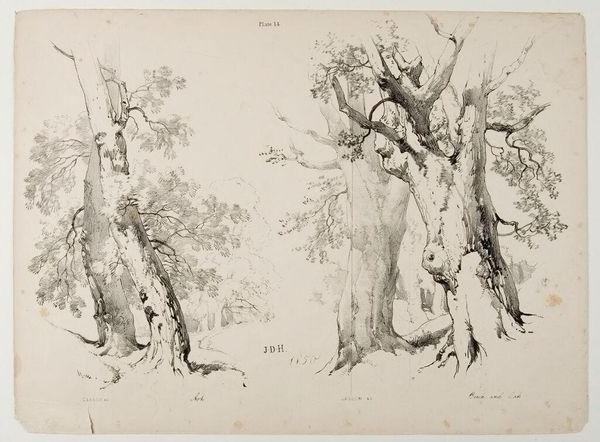This drawing, "Group of Trees," was made by Titian sometime in the 16th century, using pen and brown ink on paper. Notice how the cluster of trees dominates the composition, their trunks and foliage filling almost the entire frame. Titian's drawing teems with a sense of dynamic growth and organic vitality. Look closely at the repetitive use of lines, which creates a dense, textured surface, especially in the foliage, that merges into a singular entity. The trees create a screen that obscures depth, drawing us into a space that feels both inviting and impenetrable. This drawing destabilizes traditional landscape conventions; it's not about panoramic views but rather about an intimate encounter with nature's forms. There is a shift from idealized landscapes to an exploration of the natural world. This approach mirrors broader artistic and philosophical movements of the time, where empirical observation began to challenge established ideals, opening new ways of thinking about perception. Here, the density of the lines functions not just aesthetically but embodies a shift toward a more direct and immediate engagement with the complexities of the natural world.