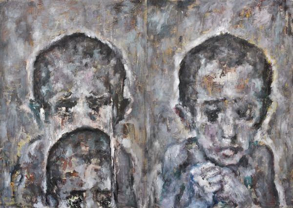 Carmen Delaco created *Children With no Name I* using a visibly textured painting technique. The muted palette of grays, browns, and whites gives the work a somber, almost ghostly presence. Look at how Delaco’s brushstrokes create a sense of form without precise outlines. The faces of the children emerge from a haze of paint, challenging our perception and understanding of identity. This indistinctness reflects a semiotic unease, as the subjects lack clear identifiers, suggesting a deeper commentary on anonymity and displacement. The structural ambiguity invites us to consider how meaning is constructed through visual cues. The absence of distinct features destabilizes the certainty we often seek in portraiture, opening up a space for introspection on issues of social invisibility. Consider how the painting compels us to confront the broader philosophical implications of representation and the power dynamics inherent in naming and categorizing. It's a potent reminder that art's meaning isn't fixed but evolves through our engagement with its forms and ideas.