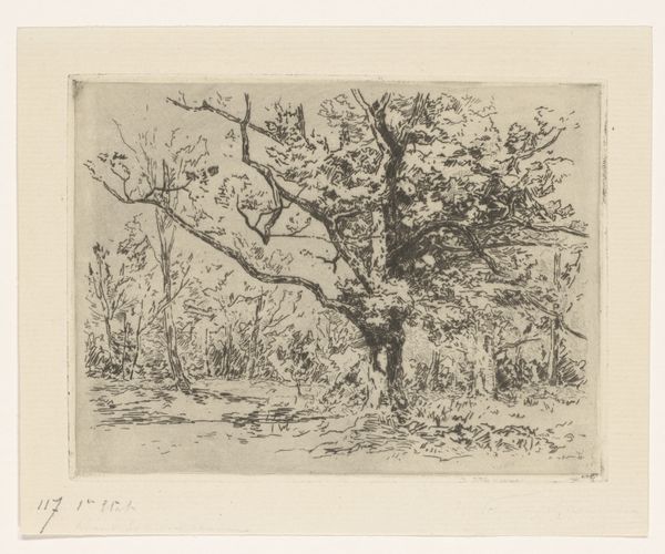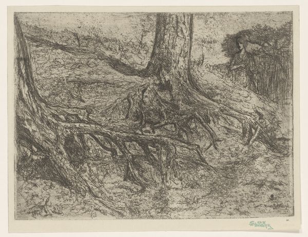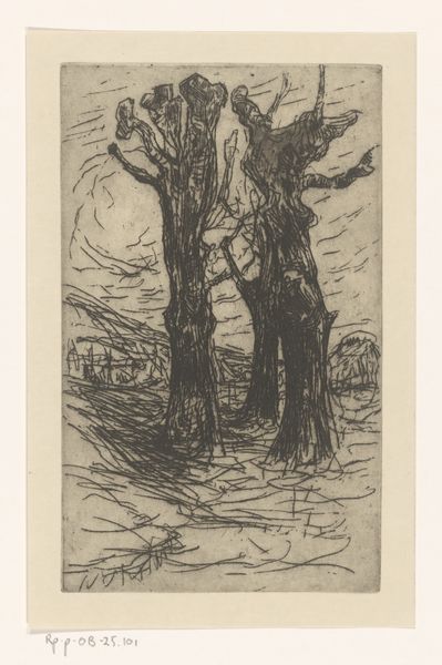 Here we have 'Knotwilgen aan een sloot', made with pencil by Wilhelmus Johannes Steenhoff. Look at these lines! They are so full of energy, almost vibrating off the page. It's clear Steenhoff wasn't just drawing trees, he was feeling them, capturing their essence. The texture is fascinating, isn’t it? Notice how the pencil strokes vary in pressure and direction, creating a sense of depth and movement. It's like Steenhoff is inviting us to step into this little landscape and experience the quiet rustling of the leaves. Focus on the knot of the tree on the left: it’s a tangle of lines, a kind of chaotic energy, yet somehow it all comes together to form this solid, grounded thing. Steenhoff reminds me of the Barbizon school, these French painters a generation or two earlier. They were also obsessed with capturing the raw beauty of nature, not in some grand, romantic way, but in a more intimate, personal manner. The piece is a reminder that art is always a conversation, an ongoing exploration of what it means to be human in this wild, beautiful world.