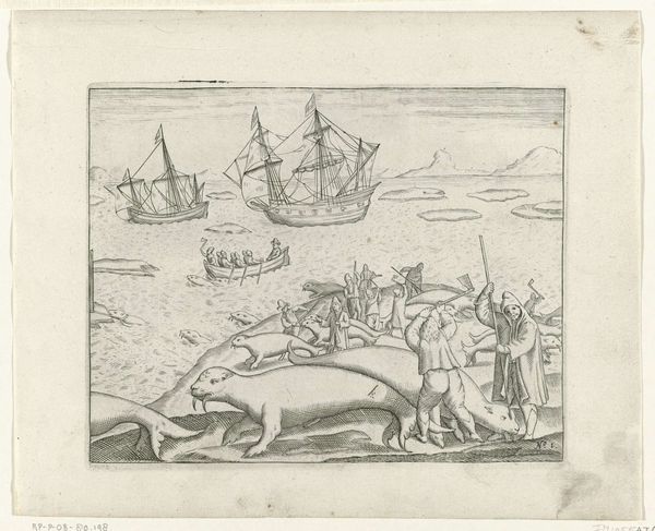 This anonymous engraving depicts a dramatic encounter between Dutch explorers and arctic wildlife in 1597. It captures a moment of vulnerability as three polar bears attack their sloops. The image offers a window into the historical context of 16th-century Dutch exploration and its relationship with the natural world. Made during the height of Dutch maritime expansion, the engraving reflects the economic and political ambitions driving these expeditions. The depiction of the attack could be interpreted as a commentary on the risks associated with exploration and the potential for nature to resist human encroachment. The image also serves to demonstrate Dutch mastery over nature. The Rijksmuseum provides a wealth of resources for further investigation. By examining archival documents, maps, and other visual materials, we can gain a deeper understanding of the social, economic, and cultural forces that shaped this artwork and the historical moment it represents.