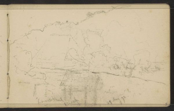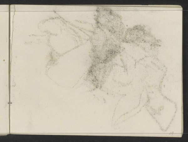 Curator: What an intriguing piece. This is "Abklatsch van de krijttekening op blad 17 verso," a drawing by Isaac Israels, likely created between 1875 and 1934. It’s part of the Rijksmuseum's collection and done with pencil, graphite, and crayon on paper. Editor: My first impression is a sense of faded memory. The sketchiness, the delicate lines, it's as if we're glimpsing something ephemeral, just barely held on the page. Curator: Exactly. Israels, during that period, was deeply engaged with capturing fleeting moments of daily life, particularly scenes of leisure and portraits. His involvement with Impressionism meant documenting modernity but also reflecting it via societal changes in how subjects are framed or made. Editor: You can certainly feel the Impressionistic influence in the quick, almost gestural lines. Look at the use of shading—how Israels suggests form with those dense patches of graphite. I wonder about the implications of reproducing a "krijttekening," that is chalk drawing, here as graphite. It feels inherently removed and distant. Curator: "Abklatsch" itself indicates a transfer or a rubbing, meaning this isn’t the original drawing but an impression taken from it. This reflects Israels’ broader interest in reproductive media and its impact on how art was perceived, disseminated, and valued. It also served as an exploration into ways to document and preserve preliminary studies. Editor: The composition, too, with that void on the left side really draws focus to the cluster of lines that define the face. A rather minimal portrait emerges from it, almost as an emergent figure coming to life from those hatched scribbles. It's incomplete, somehow longing. Curator: It echoes Israels’ socio-political sphere during a turbulent epoch. His willingness to engage the impressionistic and capture modernity made art accessible to audiences far beyond royal circles. In this work we see his approach translated across his body of sketches where subjects come and go as ephemeral subjects within his larger project. Editor: Thinking about its physical form as a transfer or "rubbing," almost a relic preserved of another piece altogether. In that, the "verso" named in the title takes on significance—a sketch of a sketch, and, like memory itself, faded and spectral. Curator: Indeed. Israels' choice to preserve even these fleeting impressions speaks volumes about his vision. And in that he helps document Dutch society while allowing people from the fringes to speak. Editor: Seeing it from that perspective, it really opens up new avenues to understanding the work—moving past the initial sketch. Curator: Absolutely. Israels created complex socio-political images via quick pencil sketches which make him, in my opinion, such an appealing subject of study.