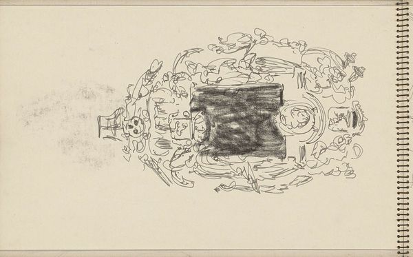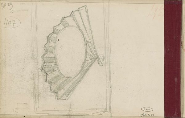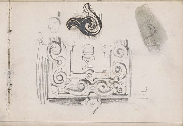 Editor: This is Isaac Gosschalk's "Fronton," a pencil drawing on paper, dating from around 1866-1868. The composition is quite spare; two geometric motifs float on the page. I’m intrigued by the contrast between the rigid geometric shapes and the softer, almost organic curves. How do you interpret this work? Curator: This drawing provides a fascinating glimpse into 19th-century architectural thought. The fronton, traditionally a symbol of power and order, is here deconstructed, almost like a forgotten sketch in the margins. What statements were architectural components of societal influence meant to project then? And who had access to them? The deliberate arrangement invites us to contemplate the sociopolitical context in which these forms were idealized, perhaps even to question those very ideals. Do you find any subversive elements in the seeming precision of the rendering? Editor: Subversive? Perhaps in the incompleteness. The sketch feels like a critique by omission. If classical forms represent authority, then maybe an unfinished drawing is a challenge to that authority? Curator: Precisely. It's about disrupting traditional narratives and power structures. In whose image are these architectural elements designed, and whose stories are silenced or erased? As you rightly point out, the ‘unfinished’ nature is crucial. The drawing opens up the possibility of reimagining these architectural forms. This artistic expression empowers us to confront, resist, and reimagine systems and norms that might otherwise seem impervious to challenge. Editor: So, it's not just about what is there, but what isn't, and what could be. That's a really interesting take. Thank you! Curator: It encourages us to consider the stories embedded within art and architecture, challenging their relationship to issues of power and social justice. Food for thought!