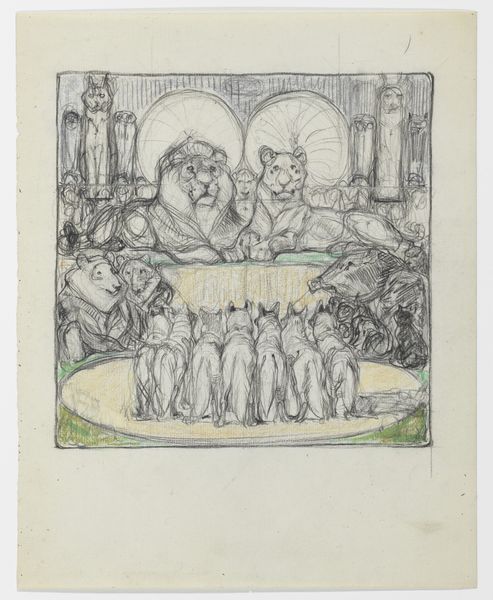 Editor: This watercolor by William Blake, "By the Waters of Babylon," shows figures in apparent distress. The subdued palette gives it an ethereal feel, but I'm unsure how to interpret the scene. What's the story here? Curator: Well, consider the title and the historical context. Blake's work often critiques power structures. Here, he illustrates the exile of the Israelites in Babylon. How does the visual composition support this theme of displacement and captivity? Editor: I see the figures are chained and weeping, and there's a harp hanging unused. They're clearly separated from the city in the background. Does Blake suggest a parallel between this historical event and social injustices of his own time? Curator: Precisely. Blake often used biblical scenes to comment on contemporary British society. The painting becomes a potent statement about the abuse of power and the longing for freedom, doesn't it? Editor: It really does. It’s amazing how much historical and social commentary can be packed into one image. Curator: Absolutely. Blake's work reminds us that art is always in conversation with its world.