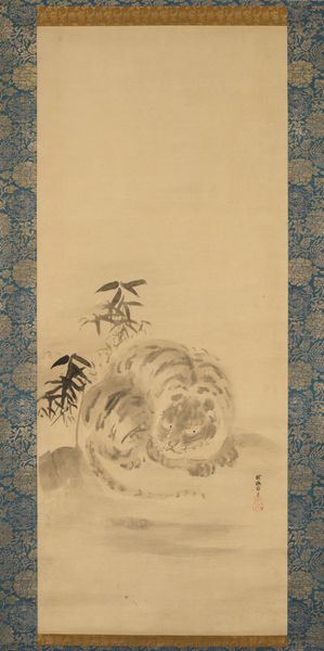 This hanging scroll, "Jizō Playing a Flute," was created by Kano Tan'yū in Japan, using ink and color on silk. The choice of silk as a ground is significant. Its smooth, absorbent surface allows for the delicate ink washes and fine linework characteristic of the Kano school's style. The process of preparing silk for painting is labor-intensive, involving careful stretching and sizing. The artist's skill is evident in the controlled brushstrokes that define the figure of Jizō and the subtle gradations of tone. The silk's inherent qualities of luminosity and drape add to the ethereal quality of the image, enhancing the spiritual atmosphere of the artwork. The use of traditional materials and techniques connects the artwork to a rich history of artistic practice and cultural values. The artist's engagement with these traditions reflects a deep respect for craftsmanship and a commitment to preserving cultural heritage, as well as the relationship between labor, materials, and cultural meaning.