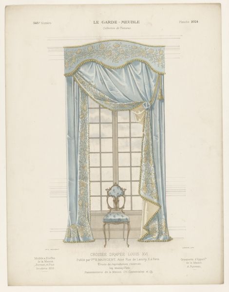 This is a design for a bed with a canopy, made by Charles Hindley and Sons during the late 19th or early 20th century. The drawing depicts a bed fit for royalty, adorned with elaborate drapery and topped with a crown. During this period, the Industrial Revolution had transformed society, creating new wealth and intensifying class divisions. This design reflects the aspirations and values of the upper class, who sought to display their status through opulent furnishings. The bed, often associated with privacy and intimacy, becomes a stage for social display, reinforcing the traditional representation of gender roles and social hierarchy. The canopy itself might evoke feelings of safety, as well as feelings of constraint. The tassels, the crown, and the elaborate ornamentation speak to the complex ways we signal status, wealth, and power, and also how those systems operate at an emotional level.