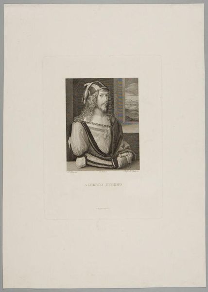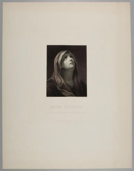 Curator: Antonio Perfetti, born in 1792, created this print, “Cumaean Sibyl,” a depiction of the mythological priestess. Editor: The composition is striking. Her gaze lifts, drawing the viewer upward, while the soft rendering creates a contemplative mood. Curator: The Sibyl was a figure of immense power, a woman who held prophetic knowledge, yet was bound by the gods to a long, perhaps agonizing, existence. This representation reflects that duality. Editor: Note how the fabric wraps her head, creating a sense of enclosure, in contrast with the slight turn of her lips, which hints at restrained emotion. Curator: Indeed, in examining her prophetic role, we must also consider the historical position of women's access to knowledge and power, and the cost that came with it. Editor: Absolutely. And, thinking about the symbolic weight, the script she holds also acts as an element that anchors the composition, providing a sense of visual stability. Curator: Thinking about the Sibyl’s long life, the artist has captured an image of contemplation on mortality. Editor: The careful composition, tonal variations, and subject merge into a portrait of profound and reflective beauty.