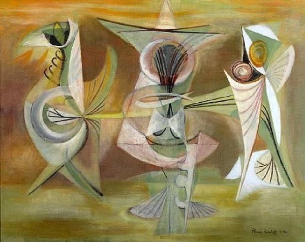 Oscar Dominguez made this painting, Femmes o Mujeres, probably with oils, and it’s like he’s wrestling with a new way of seeing. The colours are muted, yet the shapes are sharp and angular. Look at how the white of the tablecloth spills into the ghostly figures in the background; it’s all edges and angles. Dominguez isn’t trying to trick you into thinking this is ‘real’, he is showing you how he sees or feels, which is a realer kind of ‘real’ anyway. I love how the red and pink of the figure bleed into the blue-grey ground, creating these awkward, tender zones. It reminds me a little of Picasso, or maybe Picabia, in the way it breaks down form but also builds up a new kind of weird, personal space. In the end, it’s not about one meaning, but about feeling your way through the messiness of seeing.