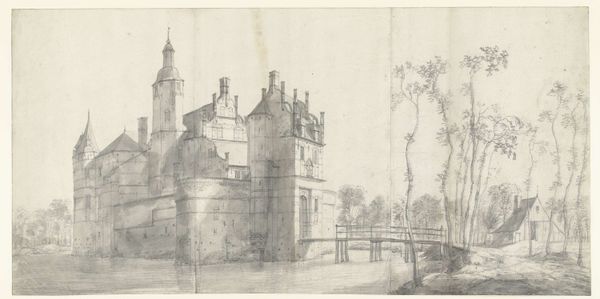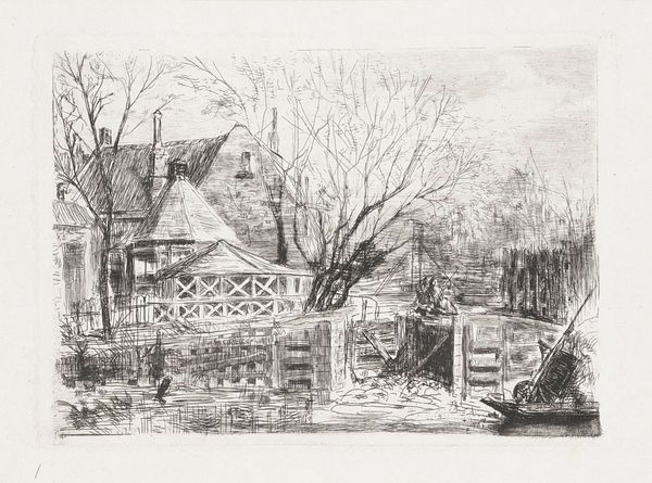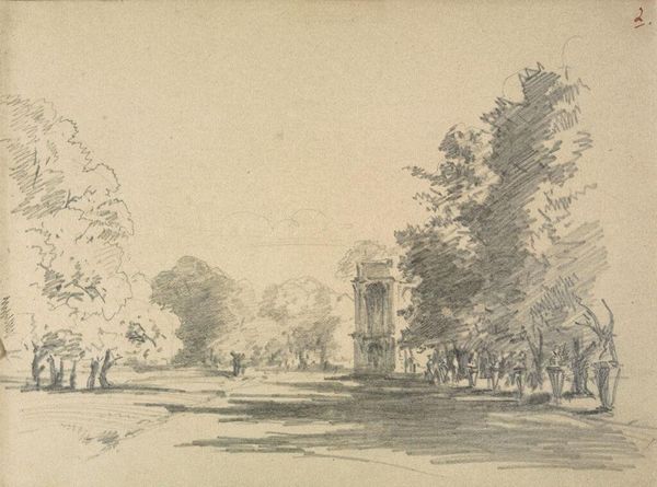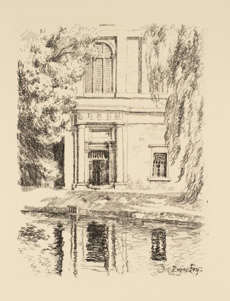 Editor: This is Sir Muirhead Bone’s "A Church in the Citadel at Arras," currently residing in the Tate Collections. The sketch is captivating with its stark contrast. What elements stand out to you? Curator: Note the skillful use of line and shadow. The artist's strategic deployment of chiaroscuro lends depth and form, particularly evident in the architectural structure. The texture, achieved through varied pencil strokes, contributes significantly to the overall aesthetic. What principles of design can you identify? Editor: The balance seems uneven. There is more detail on the right side, and the left is rather empty. Curator: Indeed, the asymmetrical balance draws our eyes towards the church tower, creating a focal point. The artist uses the lines in the foreground to drive the viewer's gaze to the subject. The composition, therefore, is meticulously planned to guide the viewer’s experience. Editor: This has been very helpful; I appreciate how the formal analysis shows a sophisticated organization in a simple sketch. Curator: It is through this structured analysis that we truly begin to appreciate the artist's intended design.