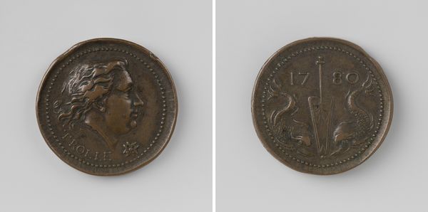 Curator: Here we have Jean-Pierre Droz’s bronze medal featuring Napoléon I. Editor: My first impression is one of stark contrast. The laurel-crowned portrait seems almost serene compared to the dramatic scene on the reverse. Curator: Indeed. Droz was a master of coin and medal design, and this piece speaks volumes about the complexities of power and image-making during Napoleon's reign. The imagery on the reverse is particularly fascinating. Editor: Absolutely! We see a figure, perhaps Hercules, wrestling a serpent. It’s a potent symbol of triumph over adversity, the hero subduing chaos. It represents strength and resolve. Curator: And that visual language was deliberately chosen to bolster Napoleon's image. The medal functions as propaganda, associating him with classical ideals of leadership and virtue. Editor: A brilliant synthesis of political agenda and artistic expression. It really shows the power of imagery, doesn't it? Curator: It does, making us question the relationship between history and manufactured image. Editor: It has me pondering the durability of symbols and their power to shift meaning over time.