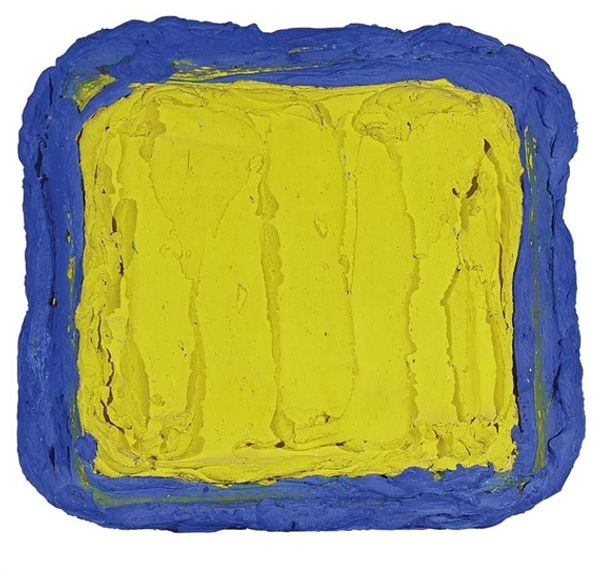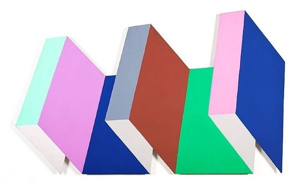 Curator: This bold construction is entitled "Dodecagon," realized in 1969 by Ronald Davis using acrylic paint. What strikes you about it initially? Editor: Well, visually it really pops—it’s undeniably optimistic and seems quite representative of its era. The bright, almost aggressively cheerful colors, along with that hard-edged geometry… it practically screams Pop Art sensibility to me. Curator: Yes, and the use of the dodecagon—a twelve-sided polygon—isn't arbitrary. In various belief systems, twelve represents cosmic order, completeness. Think of the zodiac, the twelve tribes, it appears so frequently. Editor: So, beyond its visual impact, are you saying Davis is trying to tap into something deeper? Maybe the search for order during a period of great social upheaval? I mean, 1969 was quite a year for societal shifts. Curator: Precisely. The '60s were marked by chaos but also a fervent desire for structure and meaning. Geometry itself has always been a language for understanding the universe. And, the way the inner space echoes the outer, doesn't it remind you of the mirroring found in mandalas? Editor: I see what you mean. While the surface is indeed reminiscent of commercial Pop aesthetics, with that acrylic flatness and bright color, it’s compelling to consider how these elements intersect with timeless themes. It really does create a dialogue, almost a tension between the eternal and the ephemeral. Curator: These vivid acrylics themselves mark a departure, though, representing the rise of industrial production. These saturated hues wouldn't be possible before advancements in color chemistry, connecting abstraction directly to societal innovation. Editor: And situating it firmly within the discourse of Modernism and its relationship with technology. It’s interesting how this piece refuses to settle comfortably within a single reading. It reflects the multifaceted nature of that decade itself. Curator: It certainly gives one plenty to consider beyond that first visual hit of bright colors, and geometric shapes. A true product of its time. Editor: A fascinating exploration of how form and color can simultaneously reflect cultural trends and explore enduring symbolic systems. Thank you.