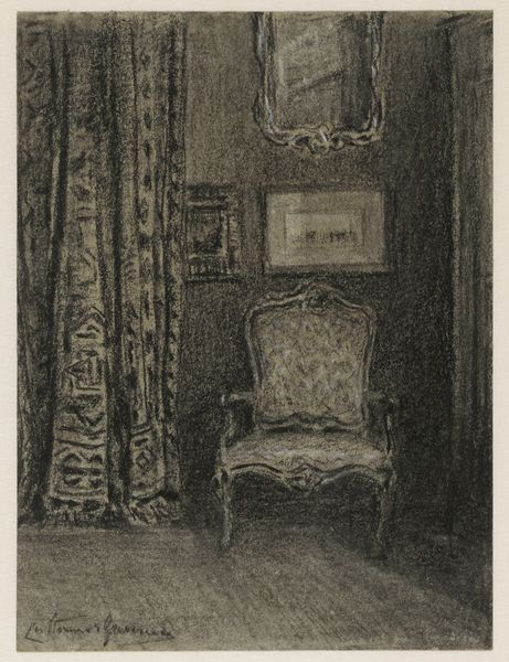 Carel Nicolaas Storm van 's-Gravesande created this etching of an interior scene. Though undated, its style and subject matter situate it within the late 19th-century Dutch art world, a time marked by a growing interest in the intimate and domestic spheres. The etching presents a room bathed in soft light filtered through a window, furnished with a table, plants, and a comfortable chair. It evokes a sense of bourgeois domesticity, reflecting the values and lifestyles of the Dutch middle class during this period. What stories could this room tell, though? Was this a room for men? For women? Or for children? The objects and their arrangements speak volumes about the gendered spaces of the time. Consider the absence of human figures. The artist invites us to project ourselves into the scene, to contemplate the quiet moments of daily life, and to reflect on the ways in which our identities are shaped by the spaces we inhabit.