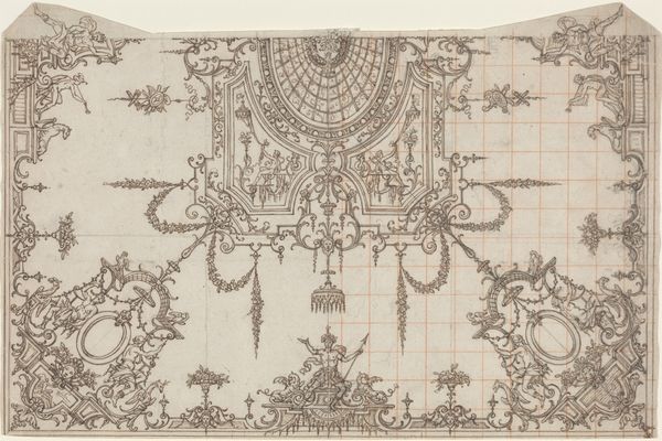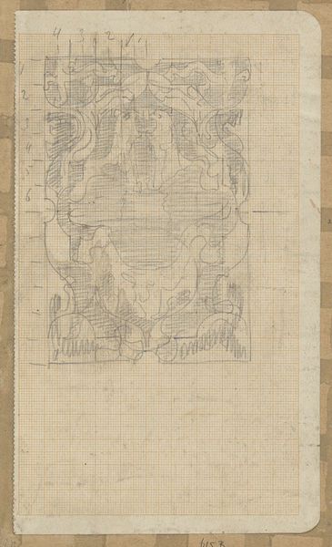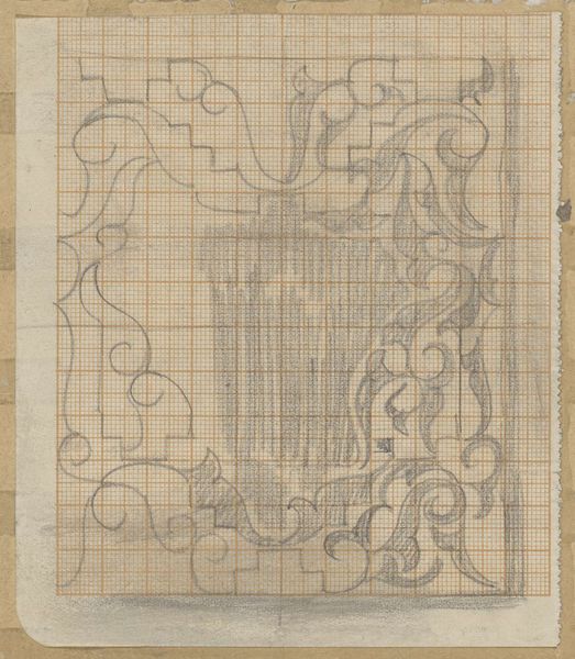 Editor: Here we have "Decoratief ontwerp," or "Decorative Design," by Carel Adolph Lion Cachet, sometime between 1874 and 1945. It's a pencil drawing on paper. The precision of the lines and geometric framework give the design a planned, almost regimented feel, but the curving, organic forms soften it. What do you see in this piece? Curator: I see the struggle between the impulse for control and the desire for freedom, which is central to the late 19th and early 20th century. This was a period wrestling with industrialization, rapid urbanization, and changing social structures, a breeding ground for anxiety, but also immense creative energy. Does that geometric framework remind you of anything in particular? Editor: Well, it looks like graph paper, the kind you'd use for architectural plans, or maybe even needlepoint patterns. Curator: Exactly! And consider what was happening with women during that period. Art Nouveau design, while beautiful, was often implemented in domestic crafts. What might it mean to confine organic, flowing forms within such a rigid, gridded structure? Could this image be read as a coded commentary on the restricted roles and expectations imposed on women? Editor: I hadn't thought of it that way. So, you're suggesting the artwork reflects anxieties about control and confinement, especially concerning women’s roles, within a seemingly innocuous decorative design? Curator: Precisely. Look at how the free-flowing lines strain against the grid. It's almost a silent rebellion rendered in pencil strokes. It makes me consider who benefits from rigid structures and who feels trapped by them. Editor: That's fascinating. I came in thinking it was just a pretty design, but now I see so much more in its historical and social context. Curator: These quiet pieces often whisper the loudest, don't they? Always question who’s setting the boundaries, and who’s dancing just outside the lines.