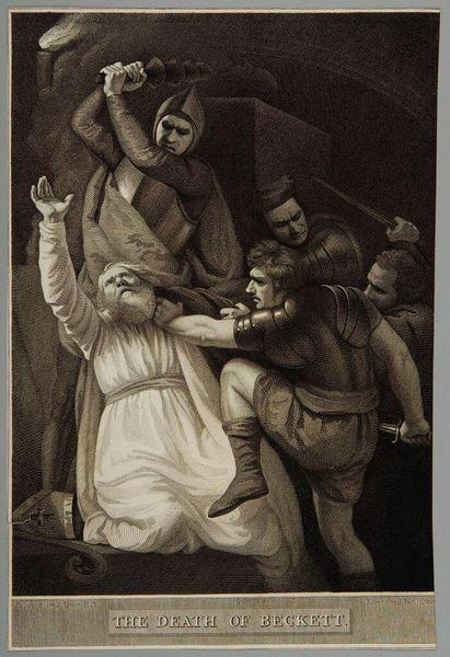 Francis d'Avignon created this lithograph, "Capt. Paul Jones shooting a Sailor," sometime in the mid-19th century. The drama of the scene unfolds through strong diagonals and contrasts of light and shadow, immediately drawing us into the heart of the conflict. The composition is structured around the tension between the standing figures and the fallen ones. Jones is captured mid-action, arm outstretched, the very picture of command, while others look on in varied states of distress. The artist masterfully uses line and form to convey narrative. The ropes and rigging not only place us on a ship but also create a visual web that entraps the figures. This work is not just a historical depiction; it's a study in the semiotics of power. Note how the artist uses the high vantage point to place the viewer in a position of control. It's an invitation to reflect on the codes of leadership, loyalty, and the often brutal exercise of authority. The lithograph serves as a space where the aesthetics of form intersect with the cultural constructs of heroism and sacrifice.