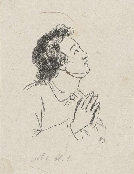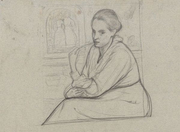 Curator: Here we see George Hendrik Breitner’s “Vrouw, mogelijk naaiend,” or “Woman, possibly sewing,” created sometime between 1886 and 1923. The artist worked primarily in the Netherlands. Editor: The quietude is remarkable. Even in the looseness of this pencil sketch, I feel a palpable sense of interiority. Curator: Absolutely. We must contextualize this with the rise of Impressionism and Realism. Breitner was fascinated with capturing the everyday lives of ordinary people. The artistic freedom he took in his practice was reflective of the social changes occurring in this period, one where gender and class were beginning to be understood more deeply, at least intellectually, although clearly much more work had to be done to make for real social equity. Editor: Look at how her hands are rendered. Intertwined, almost nervous. There’s an emotional weight carried in those simple lines. We understand something of her mood, even her psychology in that singular element. In certain symbolic interpretations of art, the action of sewing might signal weaving together a fragmented self. I see a soul trying to mend something within or without, while the eyes remain cast down toward an uncertain future. Curator: It is equally essential to discuss the woman's role, her subjugated status within a rapidly industrializing society, the limited options she was afforded… sewing here may also connote both tedious domestic work, but maybe as well, resistance to capitalism's discontents. In my reading, the drawing seems to embrace intersectional feminist concerns, acknowledging that women must overcome exploitation, that they must forge their paths even within restricted confines, that the system oppresses them… Editor: Yes, it also suggests both endurance and creativity, of creating and persevering simultaneously. It is about the timeless universality of human craftsmanship, but also more immediately, about self-care. This subtle portrait provides not only a glimpse into Dutch society during a transformative period but a meditation on psychological survival as well. Curator: Thank you, that resonates well, and it inspires fresh interpretations. What you've added really underscores why this sketch from Breitner is a crucial inclusion to our exhibit on ordinary, yet vital stories of labor during this era.