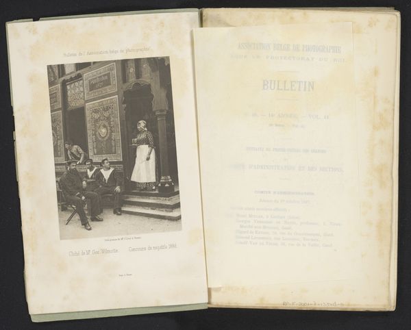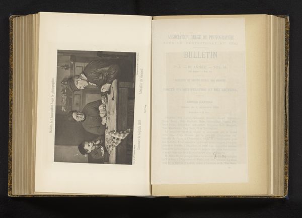 Curator: Guillaume Oury’s print, "Schilder zittend in een atelier," predates 1883. It’s an evocative glimpse into an artist’s studio. What are your first impressions? Editor: Well, initially, the composition feels a little claustrophobic, doesn't it? All those framed artworks leaning against the wall seem to create an atmosphere of artistic intensity or perhaps even... constraint? Curator: Precisely. Oury uses this dense arrangement to convey the creative spirit – note the tight interior space contrasting with the landscapes depicted *within* the paintings on the wall; a neat play between the tangible here and the idyllic beyond. Oury is deliberately playing with perspective. Editor: That tension speaks to the Romantic era's struggle to reconcile the interior life with the allure of the natural world, the imagination versus lived experience. The painter sitting in quiet contemplation becomes an icon of the artistic process. Curator: And observe how the greyscale palette adds a timeless, almost dreamlike quality to the print, softening its lines, especially on that intriguing sketch book lying on the floor. Editor: It’s interesting how the artist sitting in the photograph almost seems like just another object within it: a posed prop alongside easels, artworks, and tables – just like another painting waiting to be seen or an antique to be sold. Curator: Indeed, but what if that impression *is* Oury’s true objective? He invites us to deconstruct that entire world visually and to question how the artist functions *within* it. Note how our sightline travels straight into the scene via the fallen sheets and is pulled vertically by the stacked and framed art. Editor: So the objects stand as a kind of silent alphabet – a set of images in a painterly lexicon through which emotions can be translated. By presenting it this way, he creates a mirror to culture. Curator: Absolutely, by focusing on its semiotic richness. Editor: It’s tempting to spend ages decoding Oury’s photograph… I find this artist both inviting and deeply complicated. Curator: And I suspect he’d want it no other way.