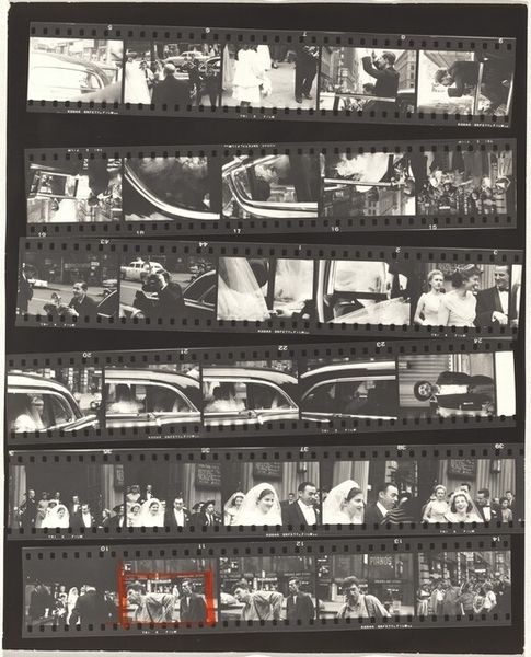 This is Robert Frank’s “Times Square--New York City 16”, a gelatin silver print, and what strikes me first is the unedited film reel. It gives us a glimpse into Frank’s process, the before and after, the outtakes, all laid bare. The texture is raw, the blacks deep and velvety, punctuated by stark, almost glaring highlights. You can almost feel the graininess of the film, the gritty reality of Times Square seeping through. Look at the sequence in the second row, the way the light spills across the diner counter. It’s like a stage set, and the people are actors caught in a fleeting drama. There is a tension between the candid nature of the shots and the deliberate act of selection. It’s this tension, this push and pull, that makes Frank’s work so compelling. Think about how the filmstrip as a whole hints at the work of someone like Christian Marclay, who's also interested in the material qualities of film. Both artists invite us to see the beauty in the overlooked, the accidental, and the ephemeral.