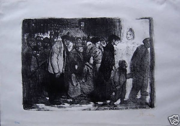 Curator: Look at this intense piece by Vasily Perov titled, "Dividing the inheritance in a monastery (Death of a monk)". Perov captured such profound narratives with just charcoal and drawing. Editor: Woah. Grim, right? Like something dredged from a nightmare. You can almost smell the stale air and hear the hushed whispers. It gives me chills just looking at the light—so harsh and unforgiving. Curator: Indeed. Genre paintings of this period often used realism as a form of social critique, you know. Think of this monastery not just as a holy site, but as a microcosm of society, with its own power structures and inequalities. Perov masterfully depicts how materialistic concerns intrude upon even the most sacred of settings. The expressions on the monks faces as they handle possessions, for example... Editor: Ugh, those faces! So greedy and detached, especially next to the stark vulnerability of the body. Is it just me, or does it feel almost staged? Like a play, each character playing a predetermined role? And that shadowy figure looming on the wall… it's theatrical! Curator: It could reflect on performative mourning and religiosity. The dramatic shadows, the arrangement of figures, everything amplifies the sense of a staged event meant for spectatorship—the ultimate theatre of faith, or the lack thereof. Notice how wealth is prioritized even at death's doorstep, with the drawing also hinting at the church's entanglement with temporal power. Editor: Yeah. It feels… violated, you know? The vulnerability of that moment, picked over. It's like, where’s the humanity? Curator: Precisely, Perov uses "Dividing the inheritance in a monastery" to highlight these contradictions within society, using the setting of the monastery to give insight into a wider comment. Editor: The power in this drawing... it sneaks under your skin. And even with all this greed being shown, this work definitely speaks beyond its time! I love the work. Curator: Well said. This drawing opens our eyes to a time and also lets us question. Powerful stuff.